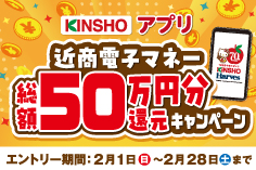 【近商ストアアプリ会員様限定】近商電子マネー総額50万円分還元キャンペーン開催中
