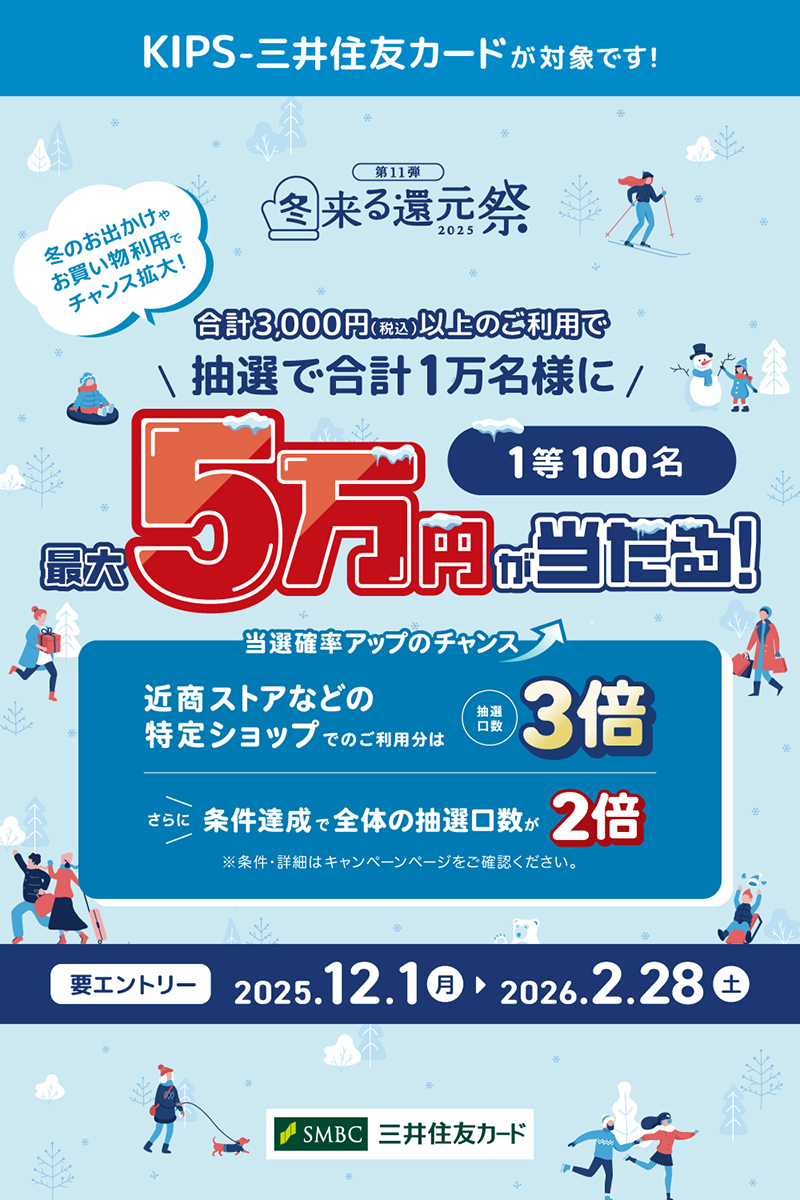 抽選で1万名に最大5万円(1等100名)が当たる!冬来る還元祭2025実施中